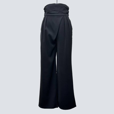 Black Strapless High-Waist Wide-Leg Jumpsuit Elegant Commuting Pants