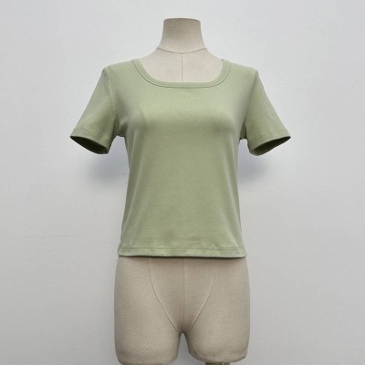 Simple Square Neck Short Cropped Short Sleeve T-Shirt Slim Fit Basic Top