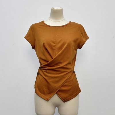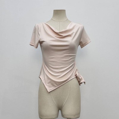 Asymmetrical Neck Twist Short-sleeve T-shirt Slim Fit Stylish Top