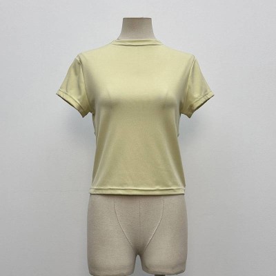 Simple Light Yellow Short Crew Neck Short Sleeve T-Shirt