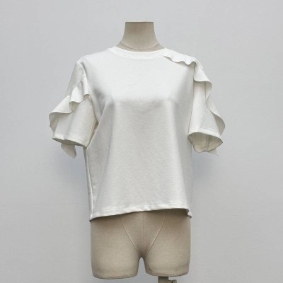 White Ruffle Design Short Sleeve T-shirt Casual Simple Round Neck Top