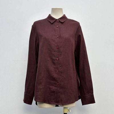 Wine Red Simple Lapel Long-sleeve Shirt Casual Commute Solid Color Blouse