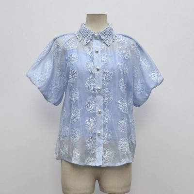 French lace collar puff sleeve see-through jacquard temperament short-sleeve shirt