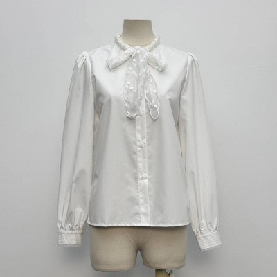 Sweet Lace Tie Stand Collar White Long Sleeve Shirt