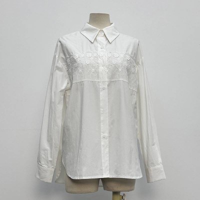 White Lace Patchwork Lapel Long Sleeve Shirt Casual Button-down Blouse