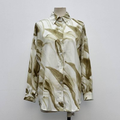 Printed Lapel Long Sleeve Shirt Loose Fit Silky Texture Blouse