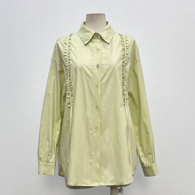 Light Yellow Ruffle Trim Lapel Long Sleeve Shirt