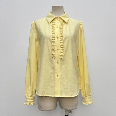 Gentle Yellow Ruffle Trim Long Sleeve Collared Shirt