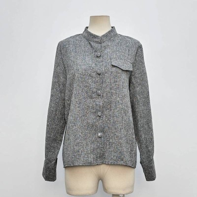 Vintage Yarn Stand Collar Long Sleeve Shirt Temperament Single-breasted Casual Blouse
