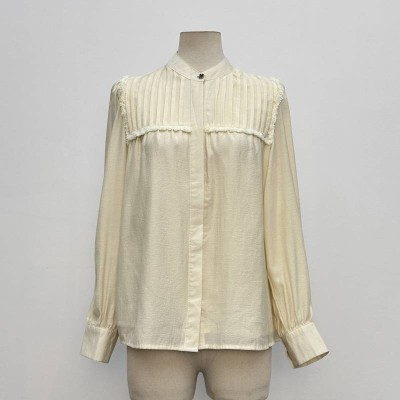 French Stand Collar Pleated Long Sleeve Shirt Gentle Style Texture Top