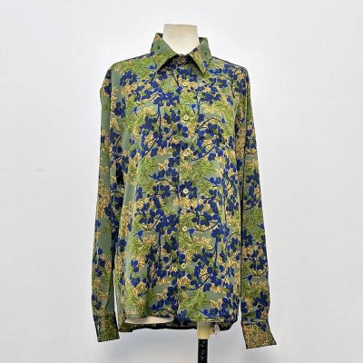 Vintage Green Base Blue Floral Long-sleeved Lapel Shirt