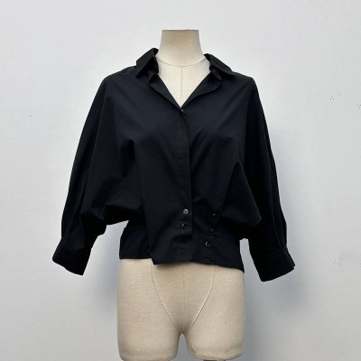 Black Batwing Sleeve Short Shirt Lapel Design Niche Top