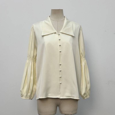 French Satin Big Lapel Lantern Sleeve Shirt Elegant Temperament Long Sleeve Top
