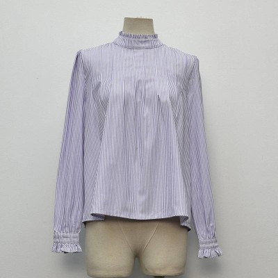 Ruffled Stand Collar Striped Long Sleeve Shirt Loose Commute Elegant Top