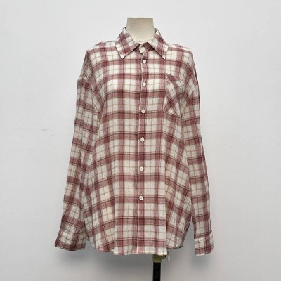 Vintage Plaid Long Loose Shirt Lazy Style Lapel Long Sleeve Blouse