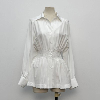 Waist-cinching White Lapel Shirt Elegant Commute Long-sleeve Blouse