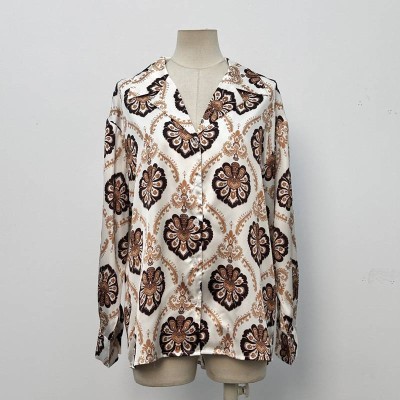 Vintage Pattern Lapel Long Sleeve Shirt Loose Silky Top