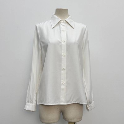 Simple Solid Color Long-sleeved Lapel Shirt Elegant Commuting Silky Texture White Shirt