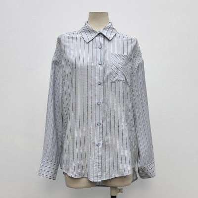 Simple Vertical Striped Lapel Long Sleeve Shirt Loose Casual Button-down Blouse