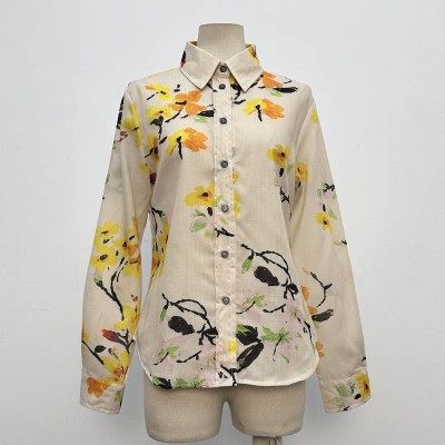 Vintage Floral Print Long Sleeve Lapel Shirt