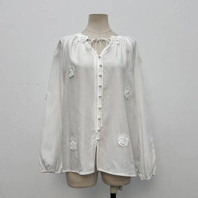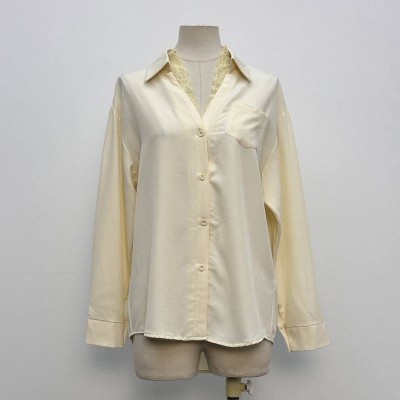 Gentle Hollow-out Lapel Long-sleeve Shirt Loose Casual Button-up Top