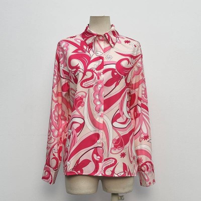 Vintage Pink Print Lapel Long Sleeve Shirt