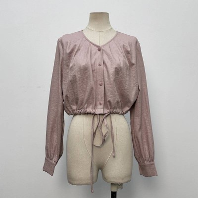 Dusty Pink Cropped Drawstring Waist Long-sleeve Blouse