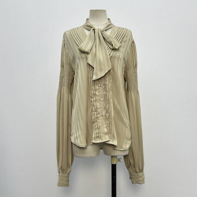 Elegant Tie-neck Lantern Sleeve Satin Shirt Retro Drape Long Sleeve Top