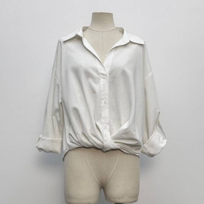 Simple Lapel Twist Design White Shirt Loose Lazy Style Three-Quarter Sleeve Top