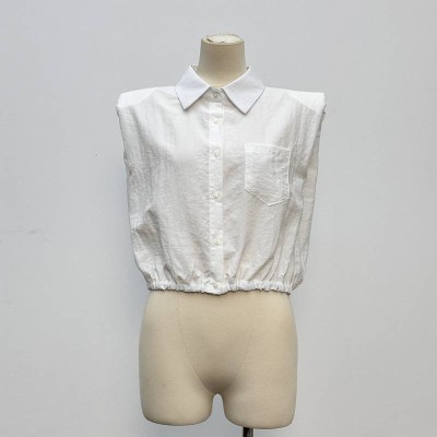 Simple Lapel Sleeveless Cropped Waist White Shirt