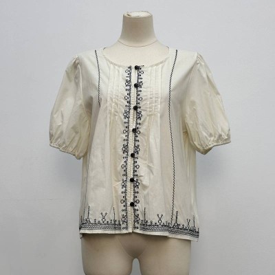 Vintage Embroidered Round Neck Puff Sleeve Short Sleeve Top Casual Loose Commute Blouse
