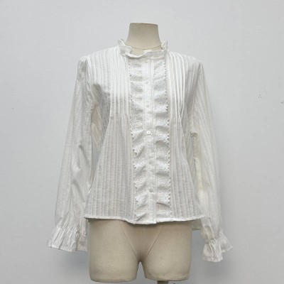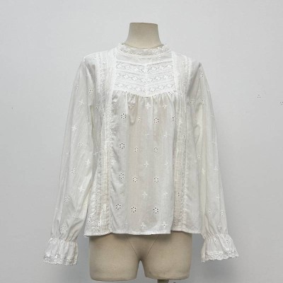 Vintage Embroidered Stand Collar Long Sleeve Shirt White Hollow Loose Slimming Temperament Top