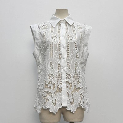 White Lace Hollow Out Sleeveless Collar Shirt Elegant Commute Inner & Outer Wear Top