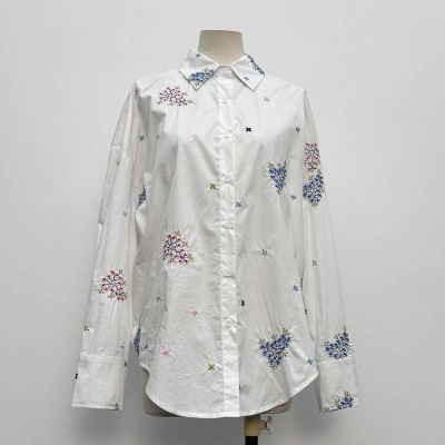 Floral Embroidery Lapel White Shirt Loose Long Sleeve Commuter Blouse
