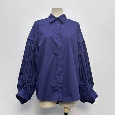 Vintage Lantern Sleeve Lapel Navy Blue Shirt