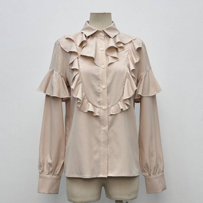 Elegant Ruffle Design Long Sleeve Shirt Nude Color Commute Blouse