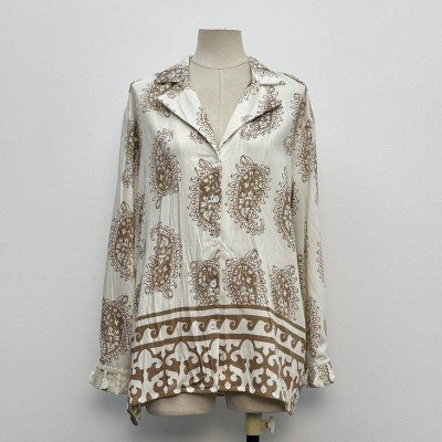 Vintage Paisley Print Lapel Long Sleeve Shirt Loose Casual Cardigan Top
