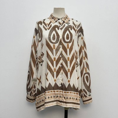 Vintage Ethnic Print Long-sleeved Lapel Shirt