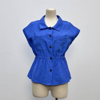 Blue Lapel Sleeveless Waist-cinching Shirt Single-breasted Slimming Temperament Top