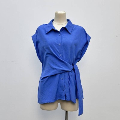 Klein Blue Lapel Sleeveless Lace-up Waist Shirt Top