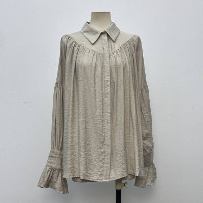 Elegant Lapel Pleated Flare Sleeve Shirt