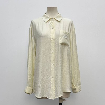 Cream Yellow Loose Long-sleeved Lapel Shirt Simple Casual Button-up Top
