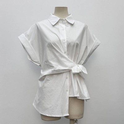 White Lapel Waist-tied Shirt Loose Slimming Irregular Hem Sleeveless Top
