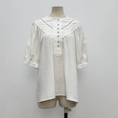 White Lace Stand Collar Half-Sleeve Shirt Loose Casual Elegant Top