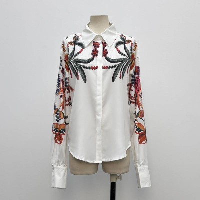 Simple Jacquard Long-sleeved Lapel Shirt Elegant Commuter White Blouse