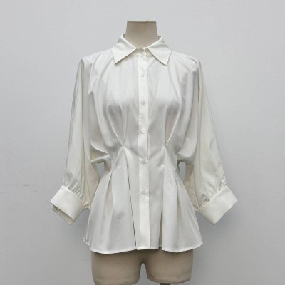 Simple Elegant Lapel Puff Sleeve White Shirt