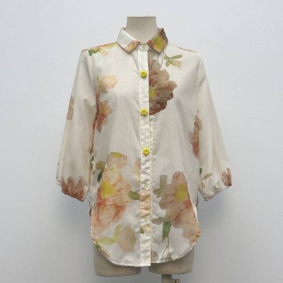 Floral Butterfly Print Lapel Long Sleeve Shirt Loose Breathable Design Top