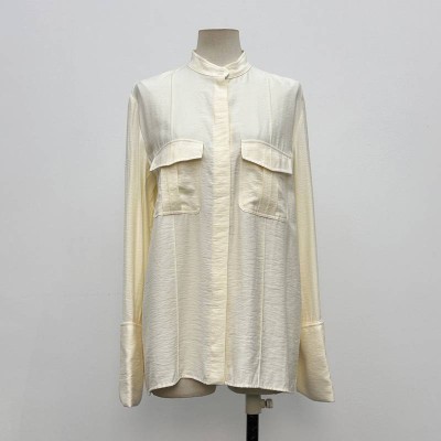 Minimalist Stand Collar Pocket Long Sleeve Shirt Off-white Loose Commute Top
