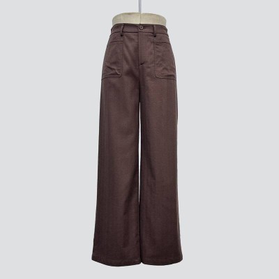 Vintage Brown High-waisted Wide-leg Casual Pants