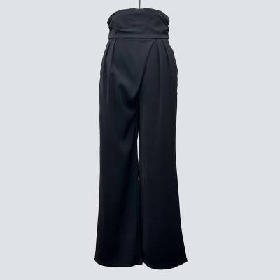 Black Strapless High Waist Drape Wide-leg Jumpsuit Slimming Commuter Trousers
